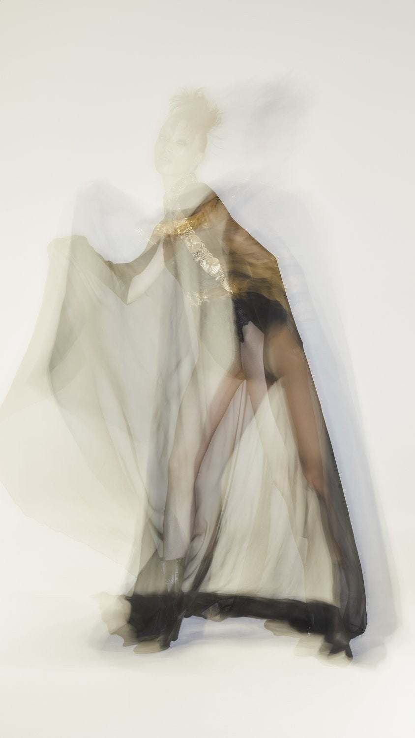 Black Chiffon Cape with Gold Trim, Matching black snap crotch.