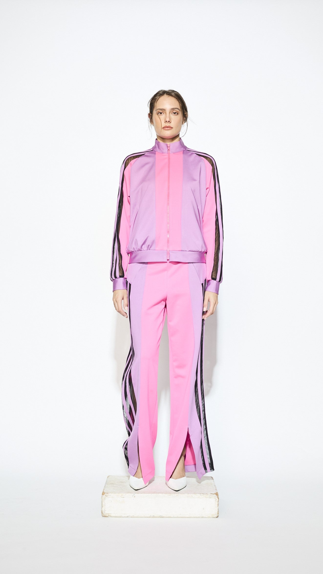 Neoprene Tracksuit with sheer side panels on both the Jacket and the Pants.