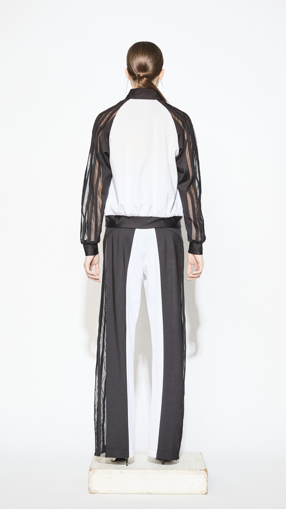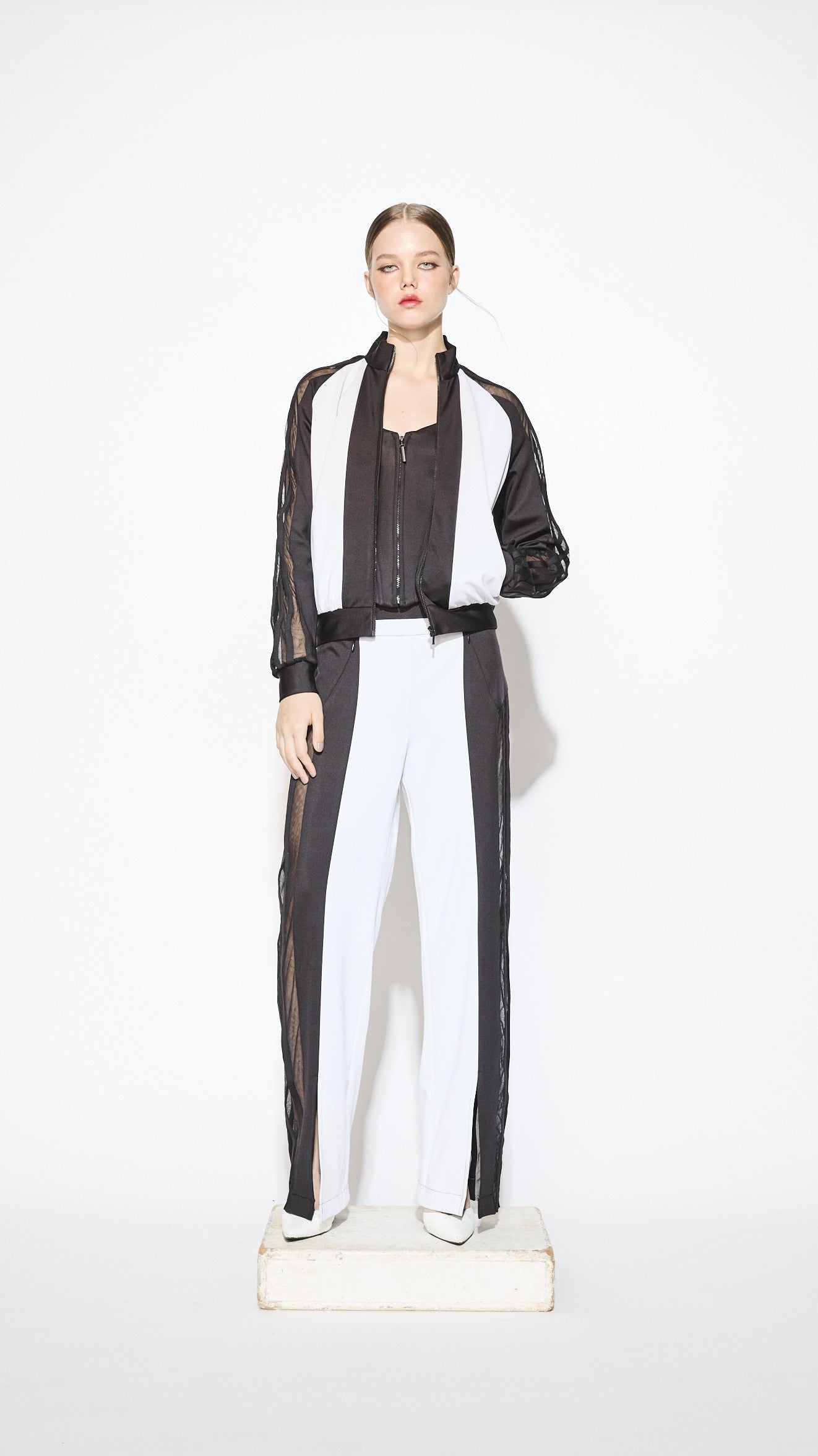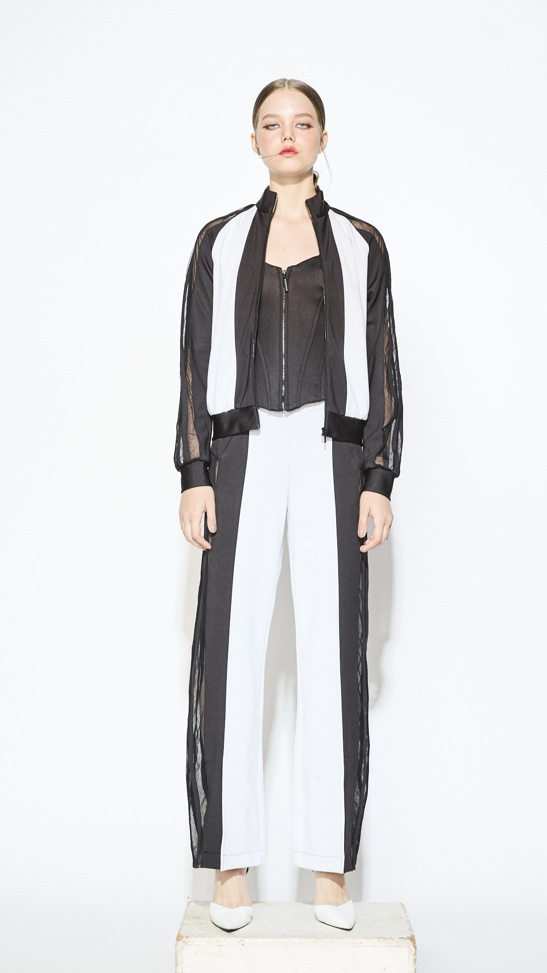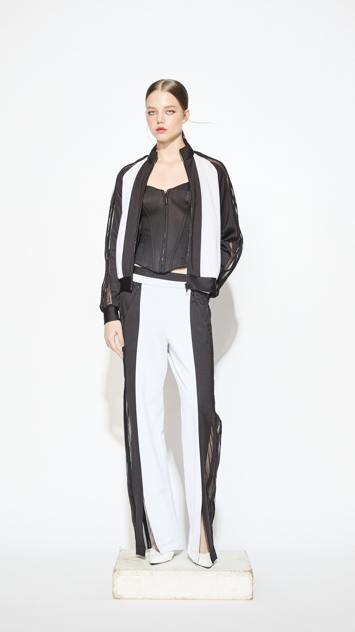Neoprene Black and White Track Jacket with Sheer Side Panels.