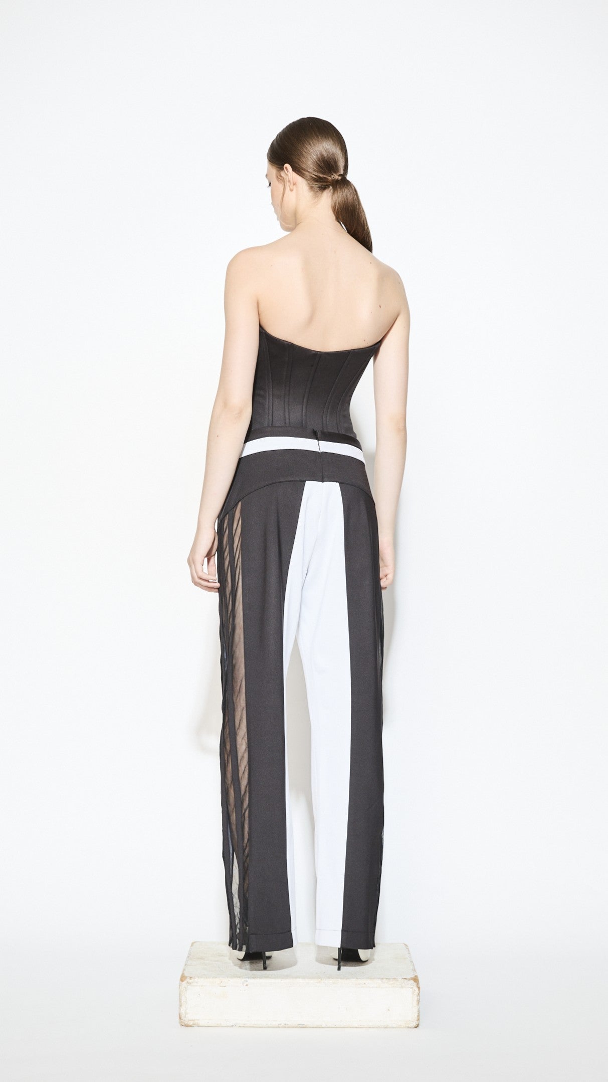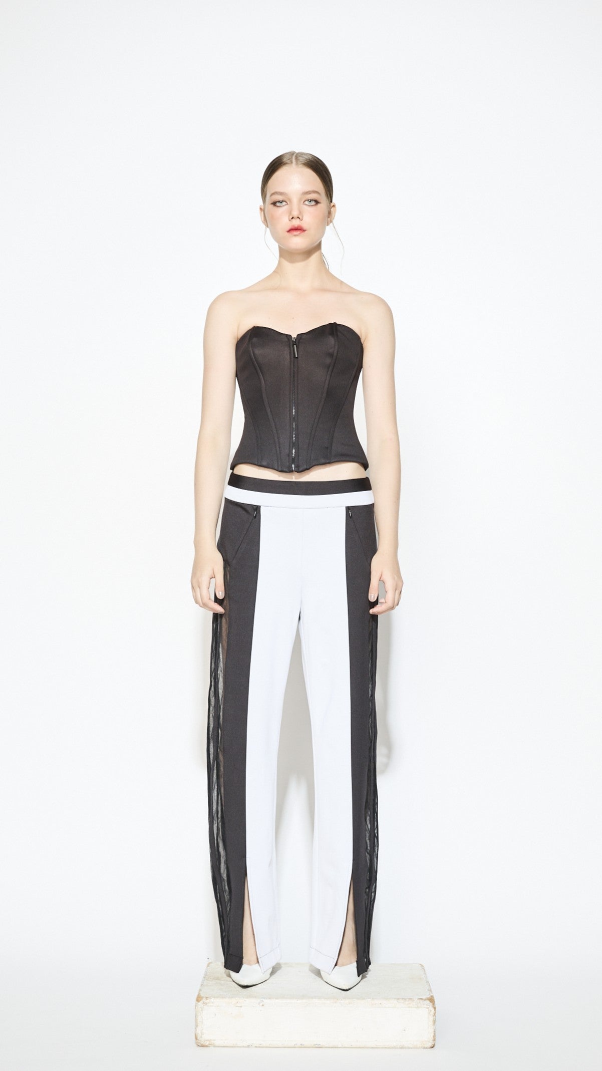 Neoprene Black and White Track Pants with Sheer Side Panels.